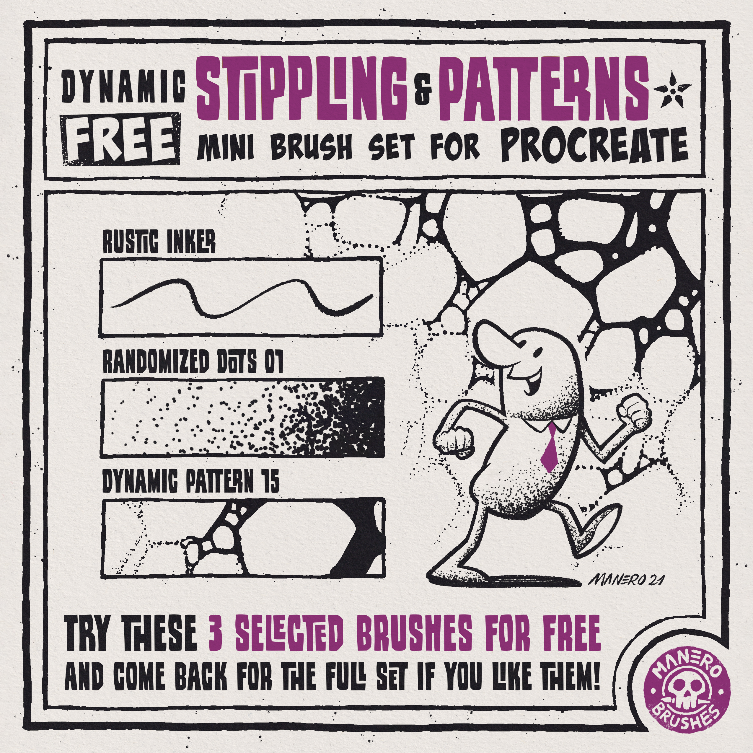Stippling & Patterns FREE Mini Brush Set for Procreate - Manero Brushes